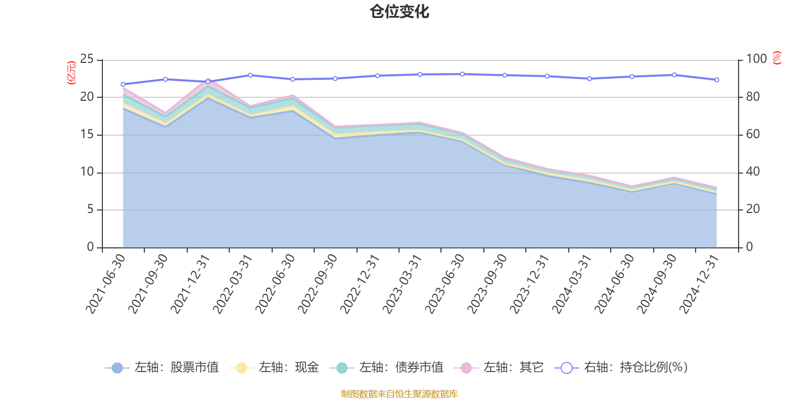据定期报告数据统计,近三年平均股票仓位为91.11%,同类平均为86.41%。2023年上半年末基金达到92.43%的最高仓位,2021年上半年末最低,为86.97%。